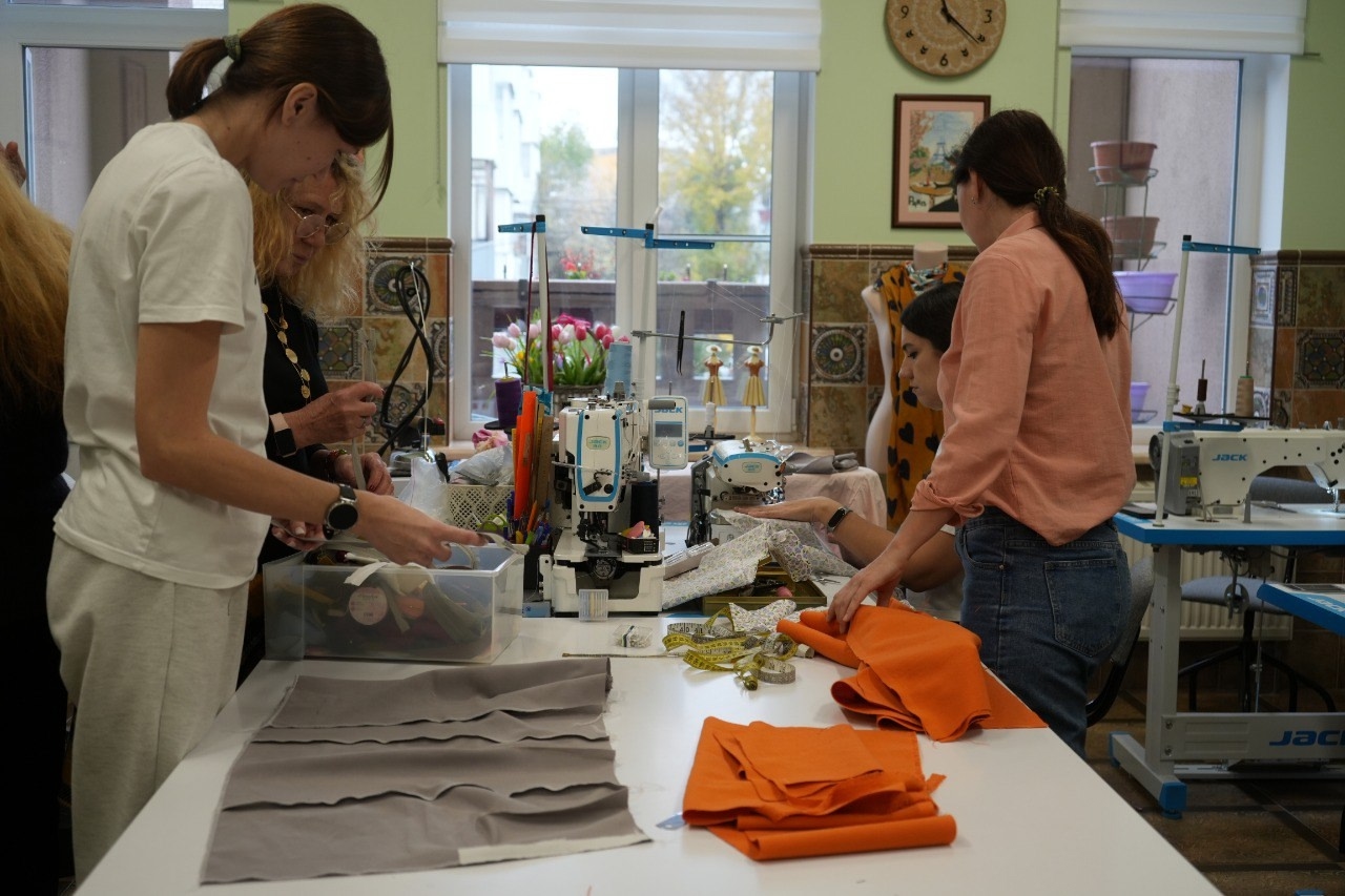 Руководитель отдела обучения Любовь Эсенцева рассказала, что сейчас создано шесть групп, в которых в совокупности занимается 45 человек. Среди учеников есть те, кто совсем не умел шить и не знаком со швейной машинкой, так и люди, имеющие определенный опыт и желающие освоить или расширить профессиональные компетенции, либо обновить утраченные навыки.