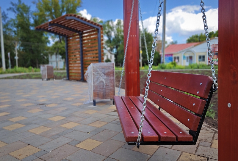 Его изготавливают в Санкт-Петербурге, а потом привезут в Отрадный. На территории сквера уже установлены качели-лавочки и урны, оборудованы места под новые скамейки. Засеян газон, а в ближайшее время вдоль улицы Буровиков высадят новые ели и установят освещение.