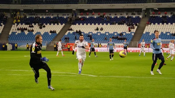 Играя в меньшинстве, самарцы продолжили атаковать и открыли счет - гол после ошибки вратаря гостей забил Денис Попович. Удвоить преимущество хозяев в начале второго тайма мог Деян Радонич, но ему не удалось переиграть голкипера.