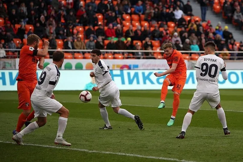 Впрочем, уже через 3 минуты защитник Виталий Денисов оставил команду в меньшинстве, получив вторую желтую карточку. Самарцам пришлось сосредоточиться на игре в обороне. Вратарь Сергей Рыжиков не раз выручил одноклубников. Однако в конце встречи гости могли вырвать победу. Самый активный игрок волжан во второй половине, Евгений Башкиров, бил головой после подачи углового. Голкипер хозяев не дал "Уралу" проиграть и констатировал итоговую ничью - 1:1.