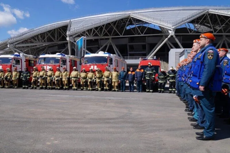 Региональные службы МСЧ и ПСС перед первым тестовым матчем на новом спортивном объекте испытали технику и личный состав.