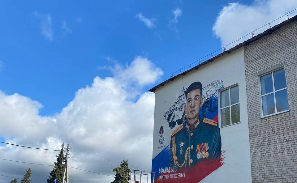 В память о подвиге на стене родной школы в Шигонах создали мурал с портретом Дмитрия при поддержке Президентского фонда культурных инициатив (ПФКИ).