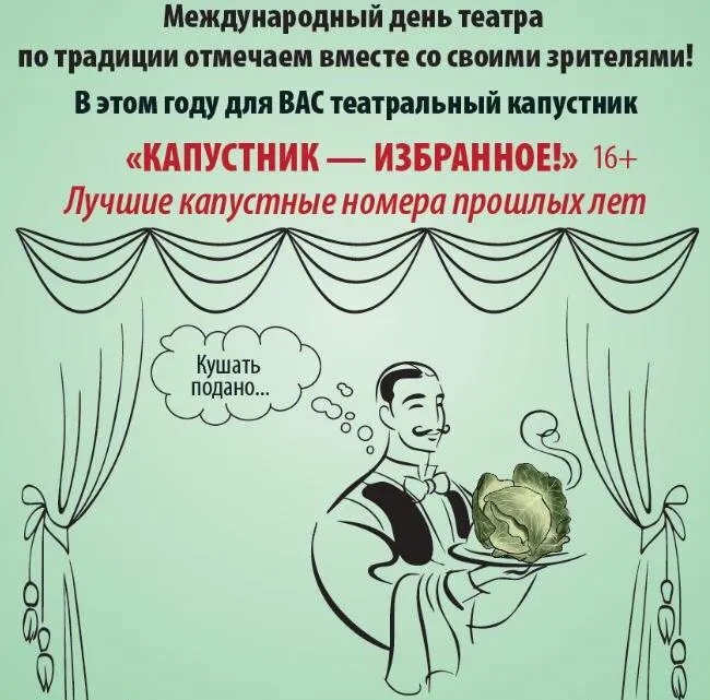 Представление под названием "Капустник - избранное" начнётся во вторник, 27 марта, в 18:30 по адресу: улица Садовая, 231.