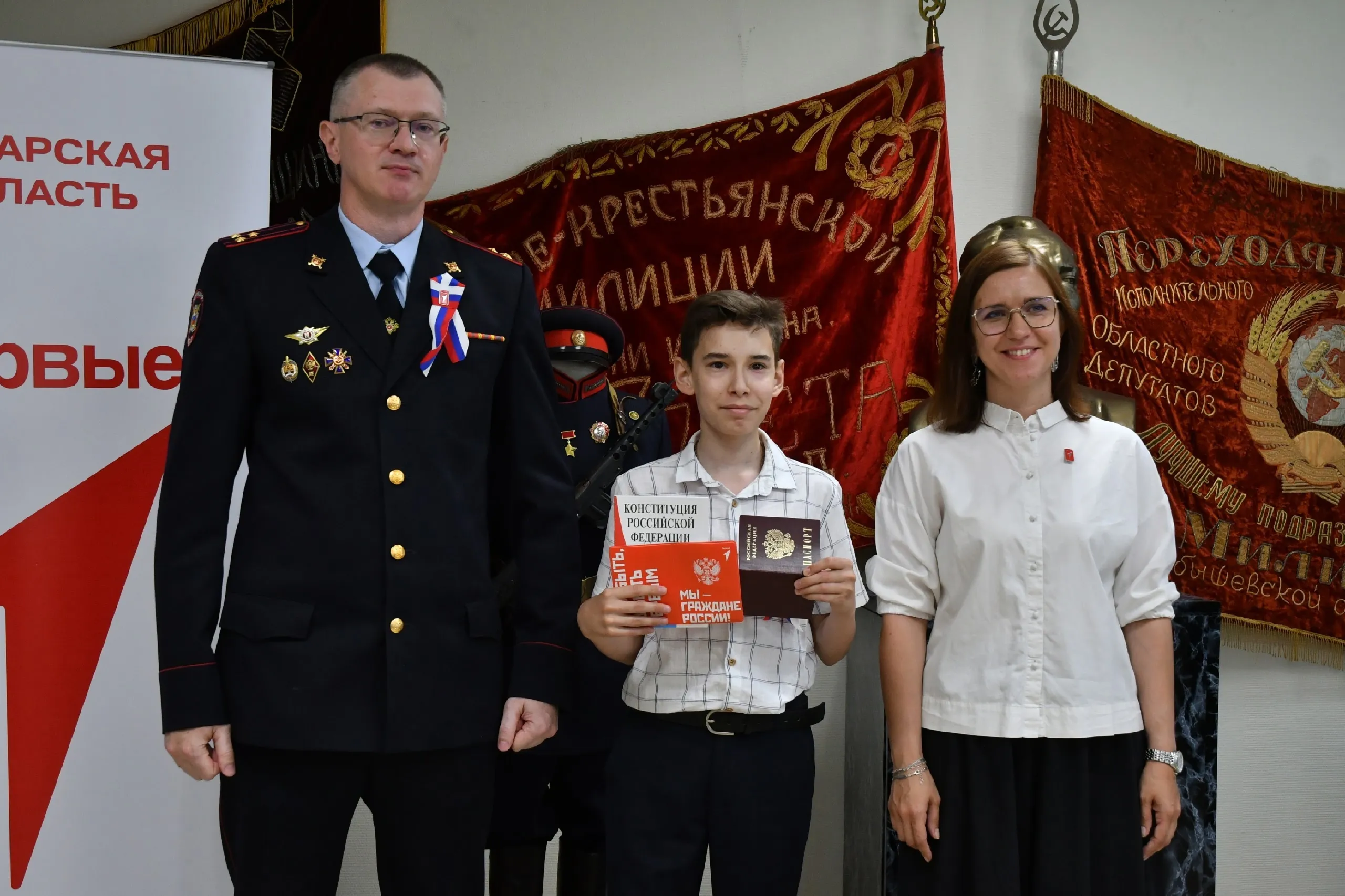 Паспорта дети получили из рук начальника Управления по работе с личным составом ГУ министерства внутренних дел по Самарской области Дмитрия Баева и заместителя председателя совета регионального отделения "Движения Первых" по стратегическому развитию Олеси Мокеевой.