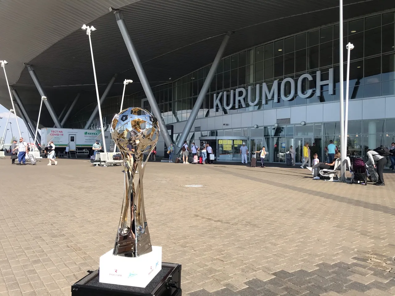 Из дождливого Санкт-Петербурга вместе с футболистами приземлился и кубок РПЛ. В рамках "Трофи-тура" зенитовцы возят трофей по городам России и знакомят своих болельщиков с главной наградой. Перед Самарой кубок уже успел побывать во Владивостоке, Челябинске, Тюмени и Нижнем Новгороде. После он вернется в Санкт-Петербург.