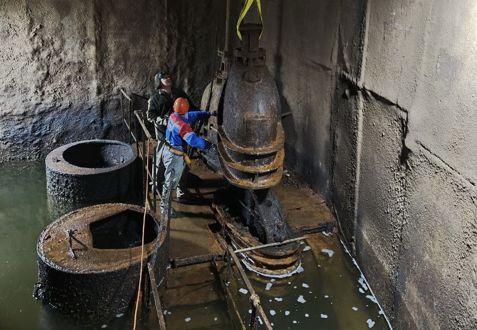 Все происходит на насосно-фильтровальной станции в Студёном овраге. 29 января там стартовал первый этап ремонта так называемой волжской задвижки. Это водопроводный элемент диаметром 1400 мм. Добраться до него непросто: он находится в камере на глубине 20 метров ниже уровня Волги. Это сопоставимо с 7-этажным домом.