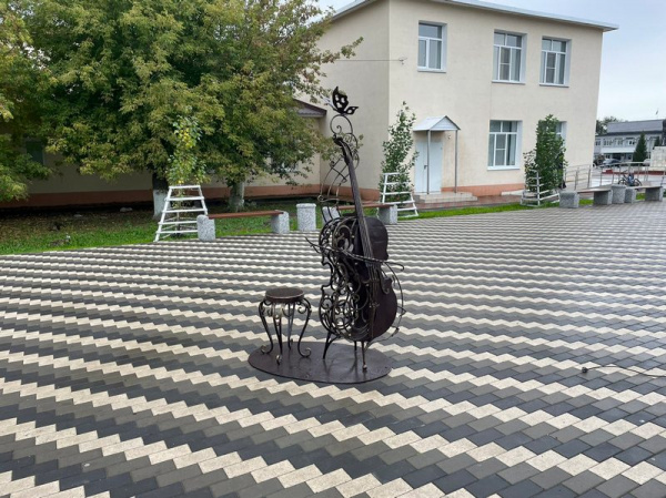 На главной улице села Приволжье установили кованую виолончель