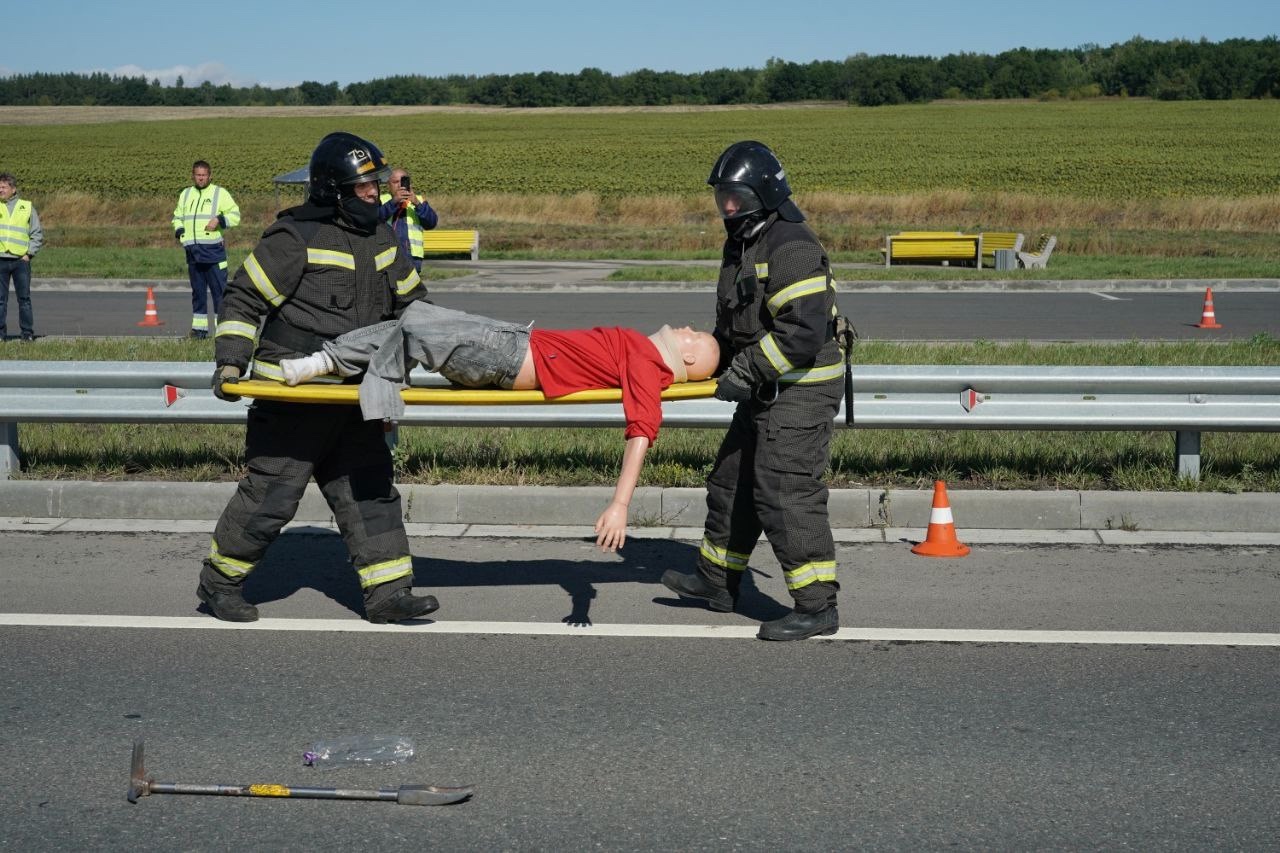 На участке трассы было инсценировано столкновение из-за превышения скорости рейсового микроавтобуса с легковым автомобилем ВАЗ-2107, в результате которого пострадали пассажиры и водитель легковушки. Движение по двум полосам Обхода Тольятти на момент учений перекрыли, а весь транспорт направили в объезд через придорожную зону отдыха.