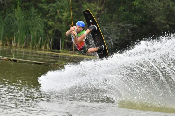 Вейкбординг напоминает смесь водных лыж, серфинга и сноуборда. Райдер встает на доску, ноги фиксирует в жестких ботинках, в руки берет фал (веревку с держателем) - и вперед! В отличие от традиционного катерного вейка, в кабельном человека тянет лебедка или канатная дорога. И конечно, по ходу движения нужно совершать акробатические прыжки.