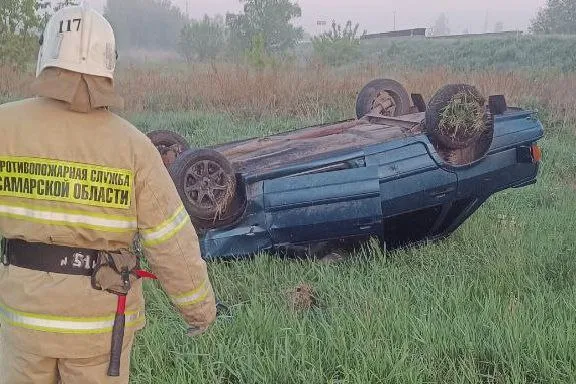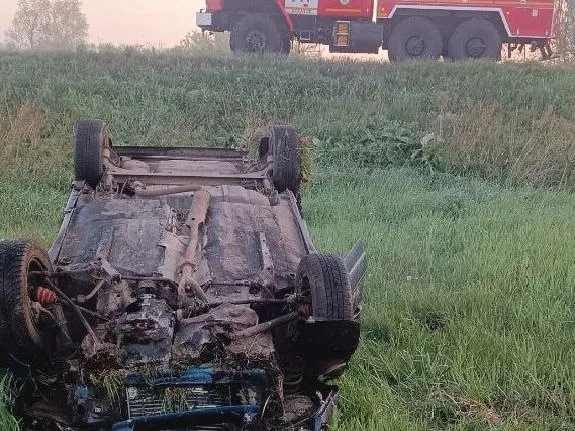 Рано утром на трассе в районе поворота к поселку Буревестник случилось ДТП. ВАЗ-2115 вылетел в кювет и перевернулся. Пострадали женщина - водитель легковушки и ее пассажир.