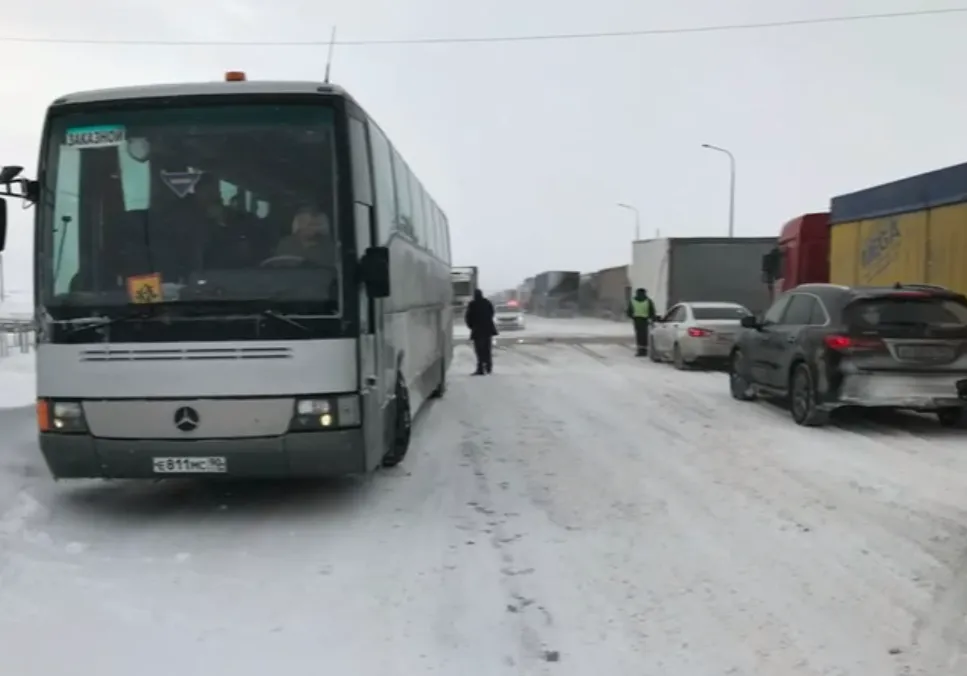 В плену у снежной метели оказались 15 школьников. Автобус, перевозивший команду, оказался в длинной транспортной очереди на временно перекрытом участке трассы Москва - Челябинск в Северном районе Оренбургской области. Движение здесь ограничили из-за сильного снегопада и плохой видимости.