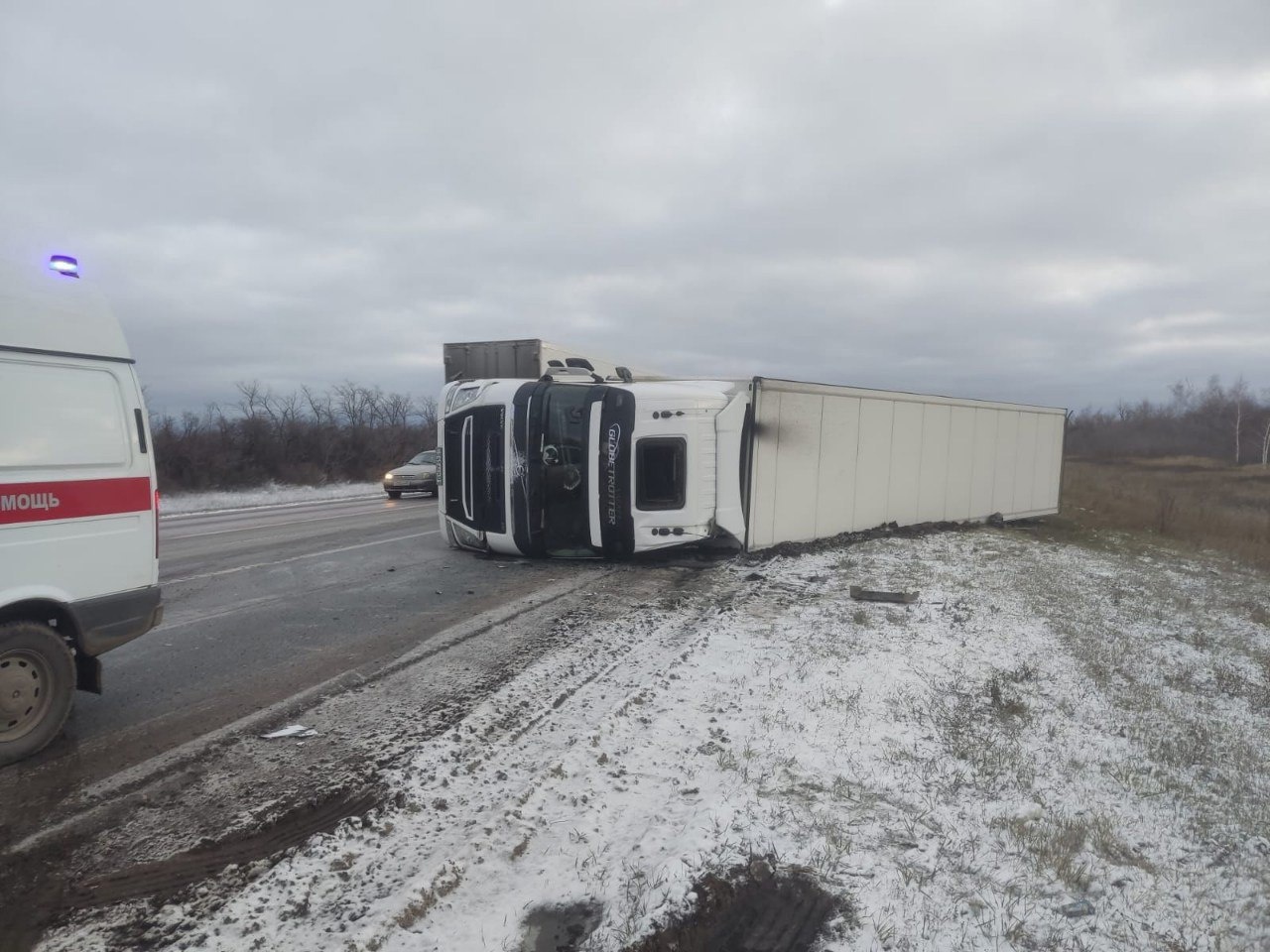 На трассе в Самарской области опрокинулся ехавший в Москву грузовик