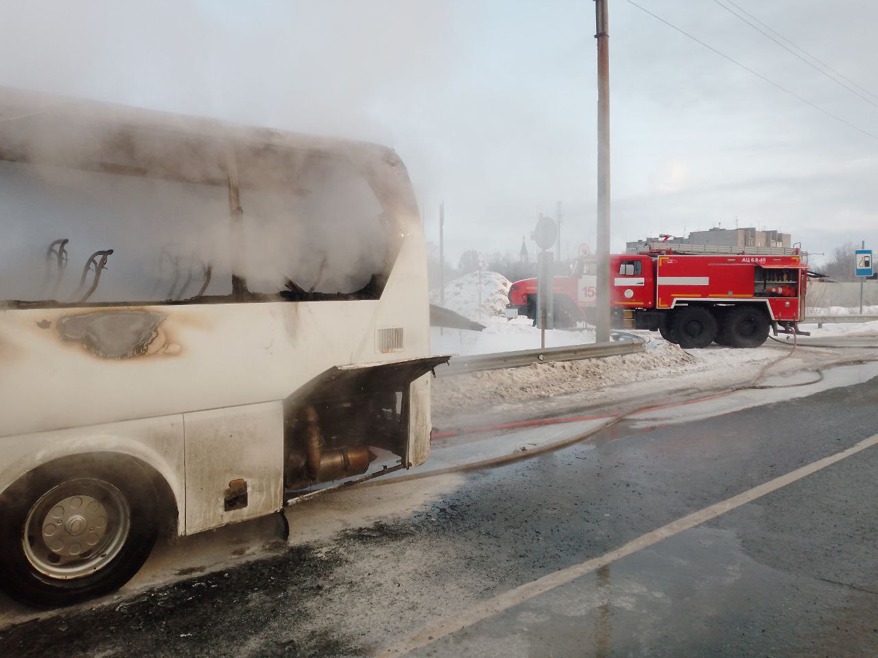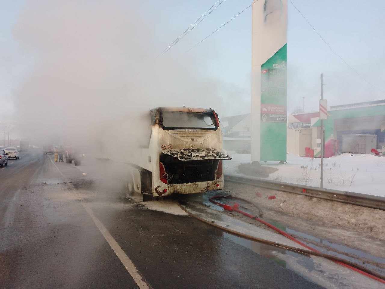 В 8:35 рядом с поворотом от промышленного предприятия к поселкам Стройкерамика и Петра Дубрава загорелся пассажирский автобус.