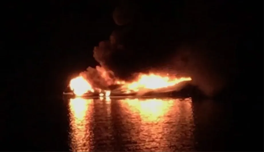 Как пишут свидетели ЧП в социальных сетях, на борту находились двое взрослых и 13-летняя девочка. Когда катер загорелся, они прыгнули в воду и самостоятельно доплыли до берега. Все живы, за медпомощью никто не обращался.