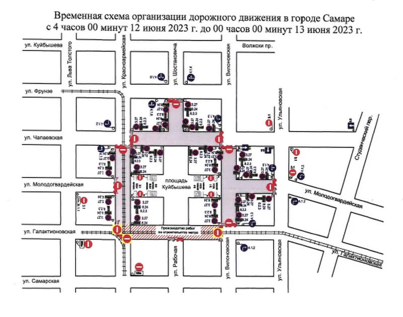 В День России на площади имени Куйбышева состоится Гранд-финал. В целях безопасности с 04:00 12 июня до 00:00 13 июня будет ограничено движение транспорта на следующих участках дорог: