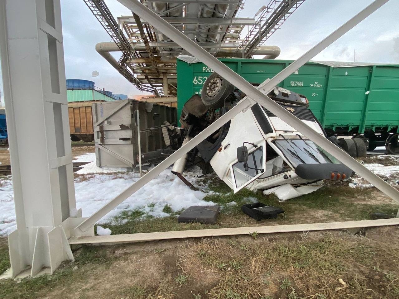На железнодорожном переезде в Самарской области тепловоз сбил грузовик