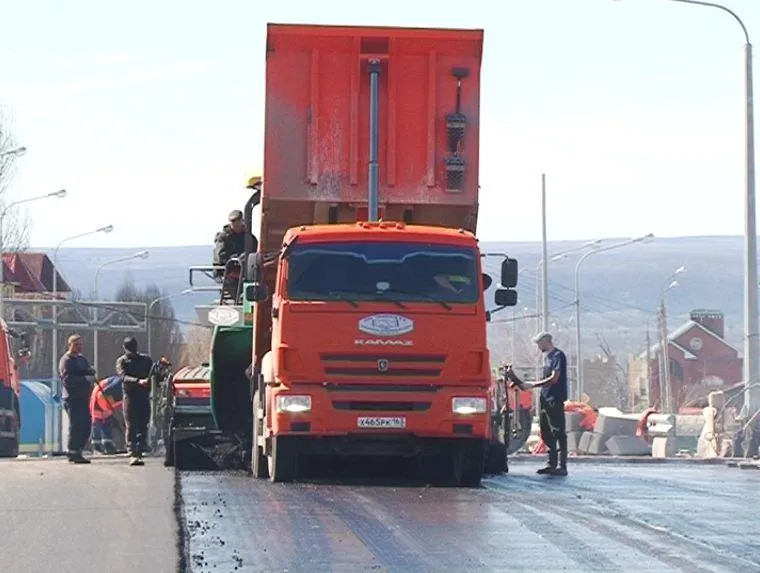 Первый слой - основа будущего покрытия. На путепроводе уложат 1348 квадратных метров асфальта. В два слоя.