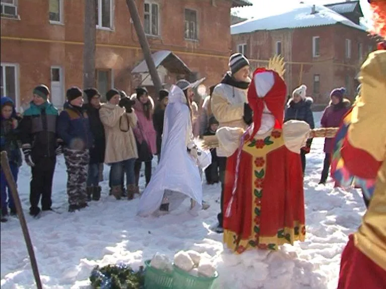 Четверг на масленичной неделе - день широкого разгула. Это катание на санях и различные обряды. И если первое в условиях города представить трудно, то вот второе в одном из дворов Октябрьского района смогли провести. В праздновании поучаствовала и наша съёмочная группа.
