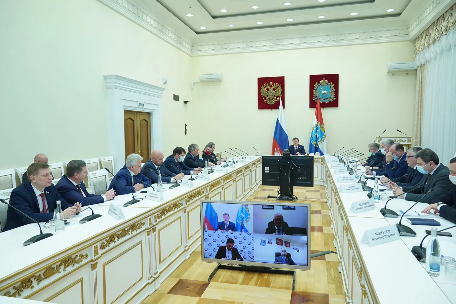 Участники встречи также обсудили вопрос санитарно-эпидемиологической ситуации в Самарской области и борьбы с COVID-19. Правительству Самарской области удается успешно решать вопрос по получению дополнительного финансирования из федерального бюджета на поддержку здравоохранения и борьбу с короновирусной инфекцией. Было отмечено, что комплекс мер, принятых как на уровне страны, так и региона, позволили стабилизировать ситуацию, создав условия для текущего снижения заболеваемости и нагрузки на сферу медицины по сравнению с пиковыми периодами.
