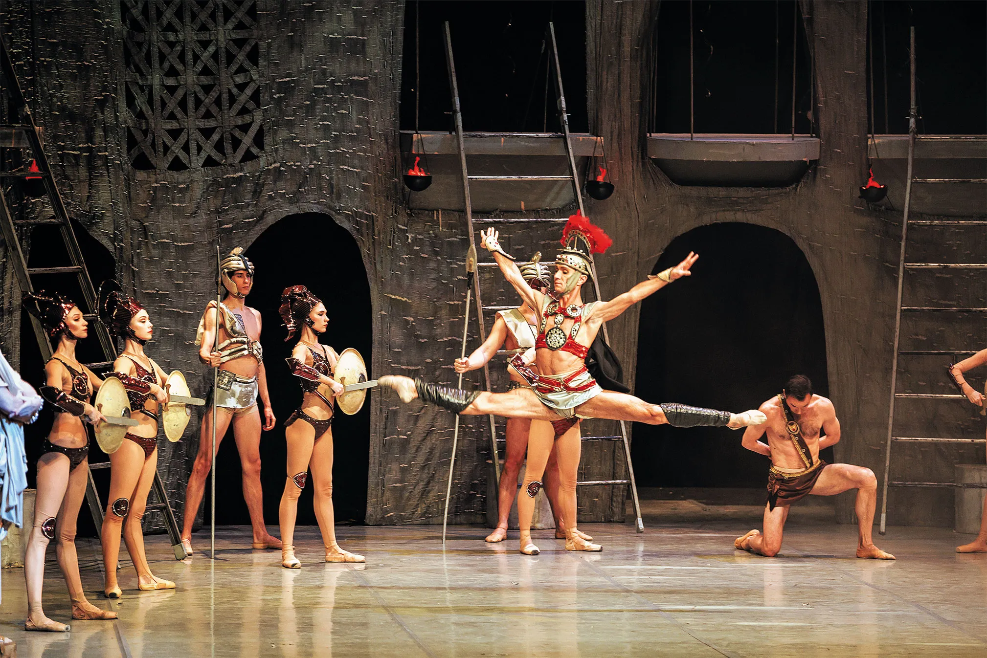 Хореография в спектакле в полной мере передает нравы поздней Римской империи, погрязшей в стяжательстве, чревоугодии и разврате. В танец вплетены элементы настоящего боя, которому артистов обучал известный постановщик трюков в кино Александр Малышев.