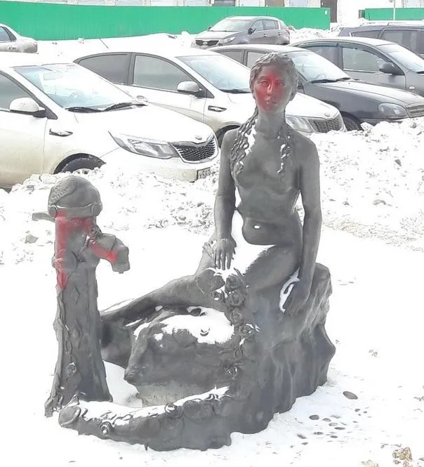 В среду, 7 февраля, на ул. Луначарского произошел акт вандализма. О случившемся в редакцию ТРК “ГУБЕРНИЯ” сообщили читатели. По словам людей, скульптуру, изображающую русалку, сидящую возле водоразборной колонки, неизвестные хулиганы облили красной краской. Примечательно, что со времени установки арт-объект уже успел стать местной достопримечательностью, гости города частенько фотографировались возле памятника девушки с колонкой.
