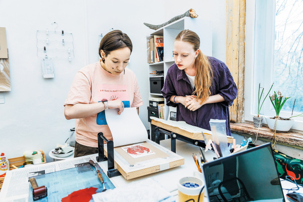 - Линогравюра - "грязное" дело, поэтому я искала отдельное помещение для мастерской, - рассказала Волкова. - У этого дома на улице Галактионовской - классный вайб, поскольку раньше тут находилась детская гимназия, потом школа. Со временем поняла, что хочу проводить в мастерской разные мероприятия. Поскольку муж дает уроки музыки, мы решили, что будем снимать помещение вместе.
