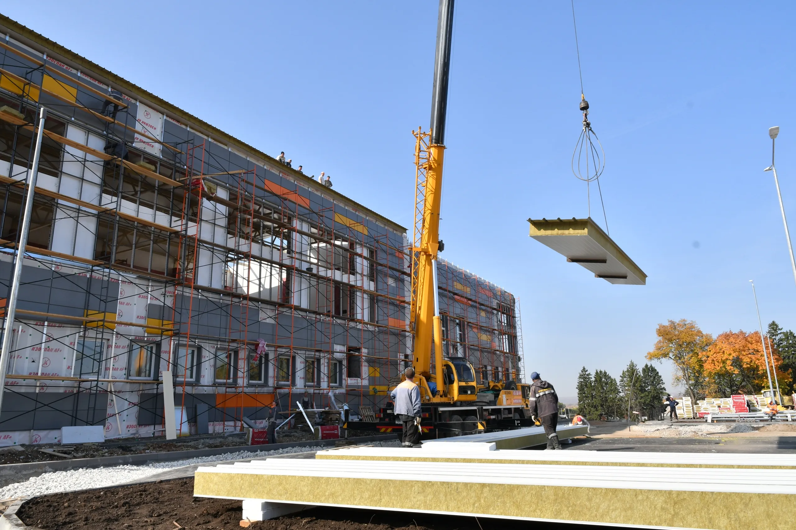 - Общая готовность всего объекта на сегодняшний день составляет 40 %. Темпы строительства очень высокие. На объекте трудятся более 200 рабочих и полтора десятка единиц техники, работаем в две смены. Отдельные звенья и бригады выходят в ночную смену. Уже начинаем делать чистовую отделку в санузлах и столовой, выкладывается плитка, идет предмонтаж потолков, - сообщил строитель.