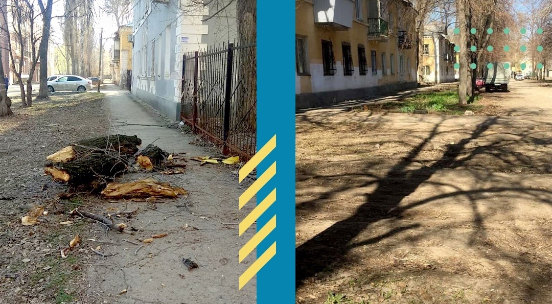 - В соцсетях пользователи выложили фотографии обломков деревьев на тротуаре около Театрального проезда. Часть обломков остались на проводах и заборах и в любой момент могли упасть на прохожих. Специалисты ЦУР63 после обработки передали сигналы в районную администрацию - в тот же день деревья убрали.