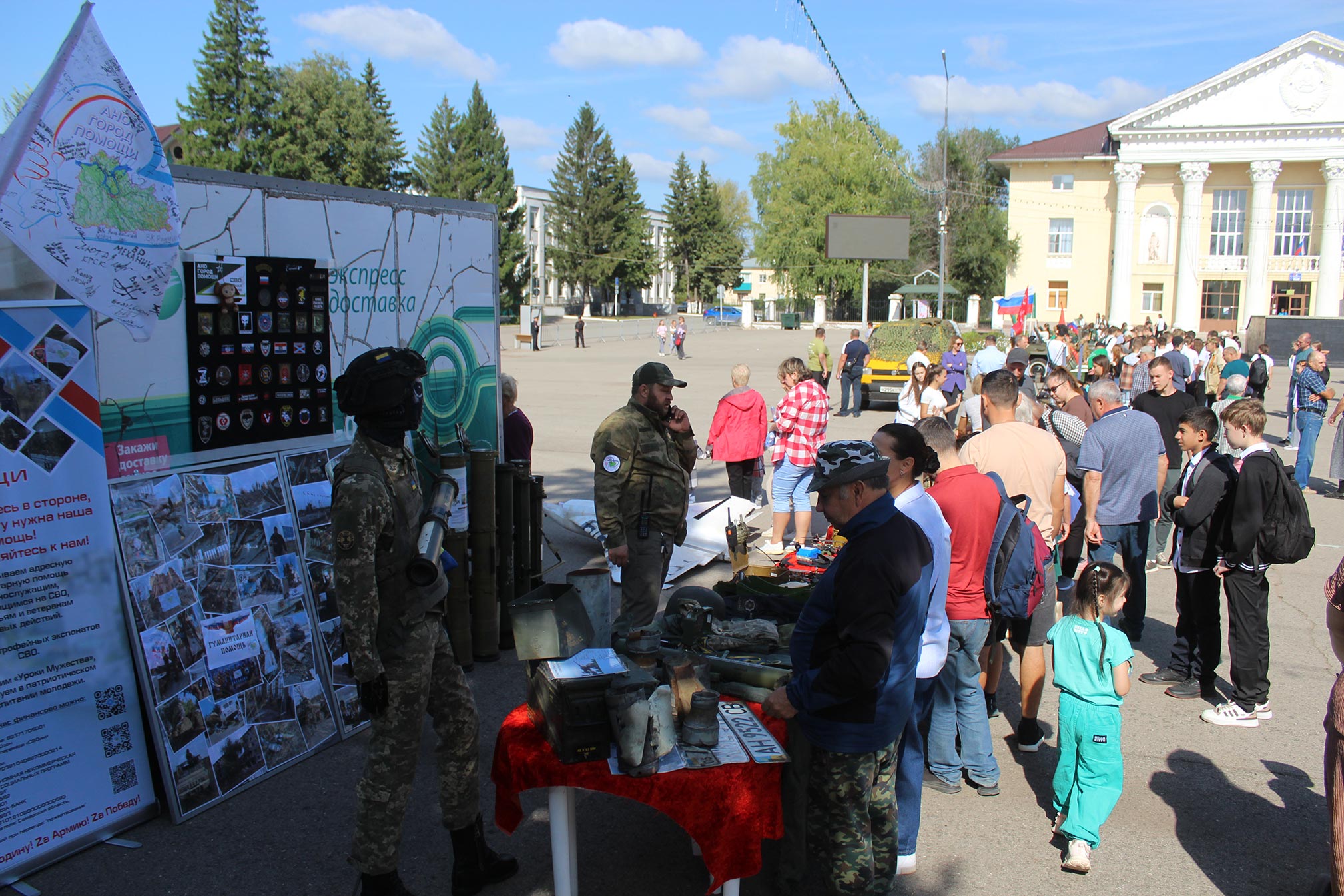 Организаторы уделили особое внимание военно-патриотической тематике. На площади провели мастер-классы по плетению маскировочных сетей и изготовлению окопных свечей. Школьники и студенты представили образцы дронов.