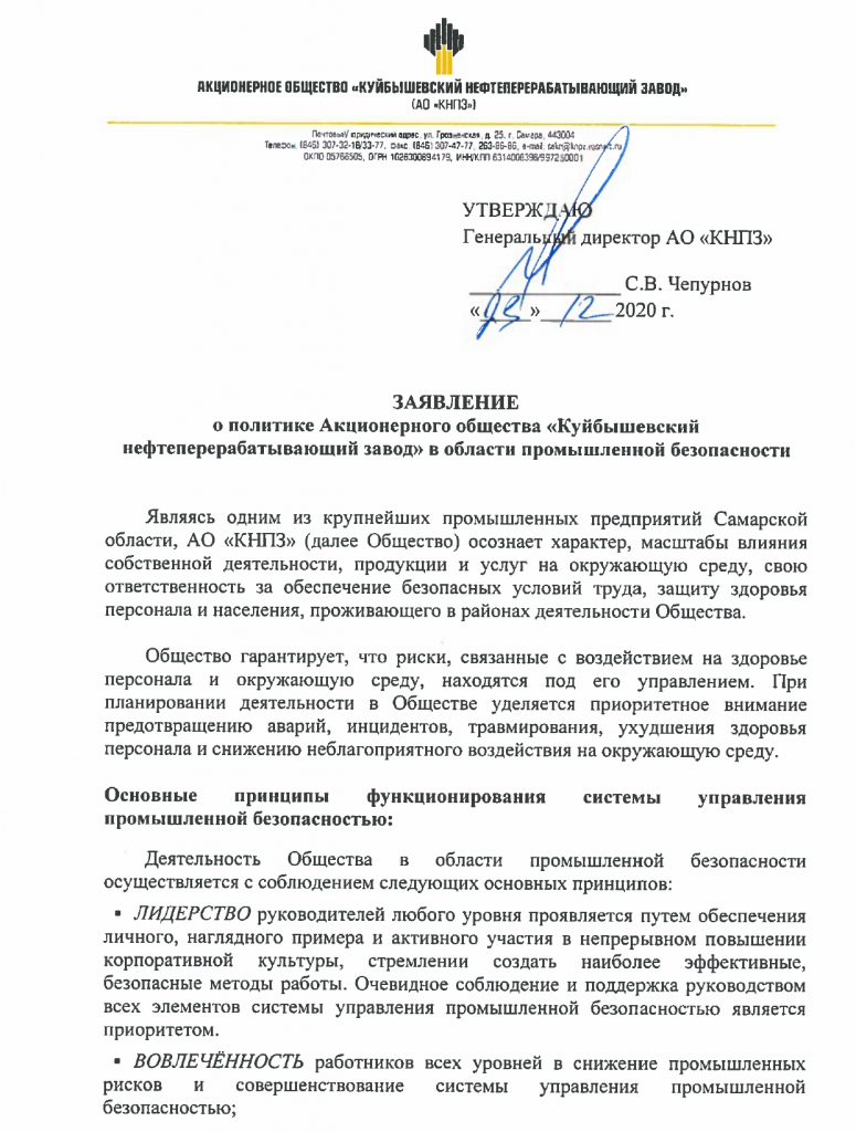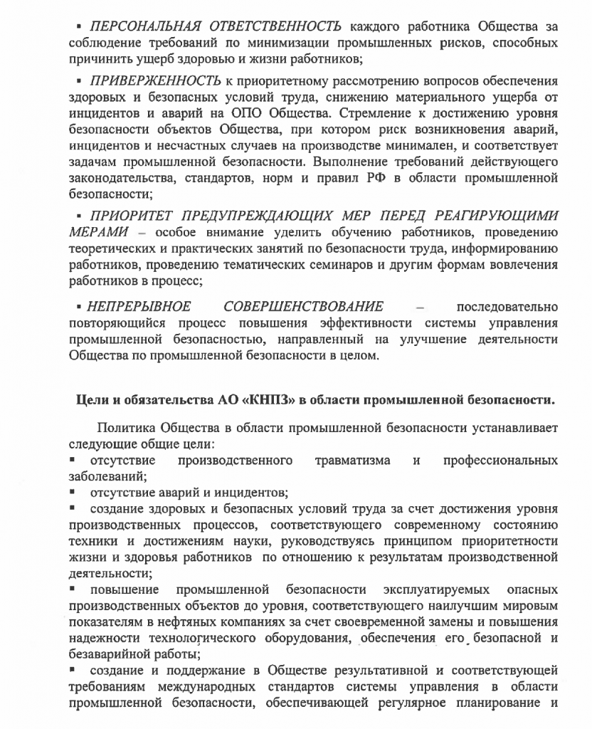 Официально: политика КНПЗ в области промышленной безопасности