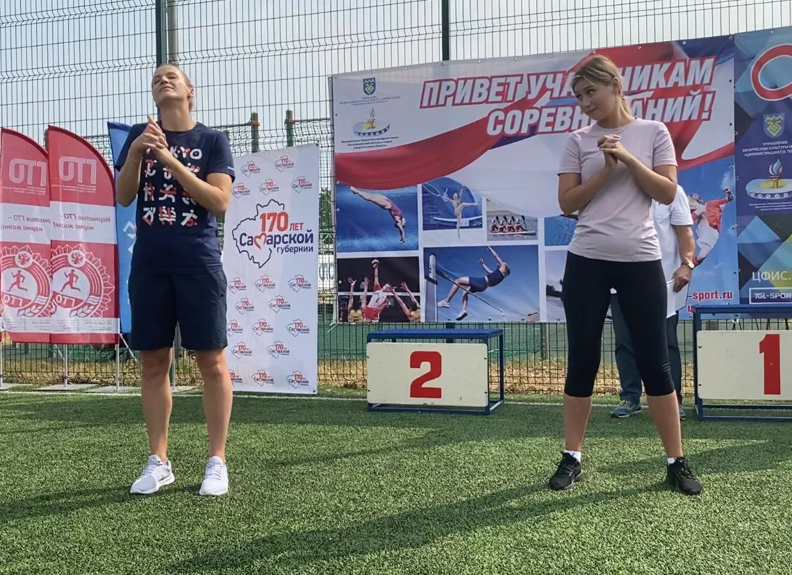 Гвоздем программы стала зарядка с чемпионом. Ее провела серебряная медалистка Олимпийских игр в Токио, прославленная гандболистка из Тольятти Ольга Фомина. В качестве соведущей зарядки спортсменка пригласила активистку движения "Мы вместе" Ирину Долгополову.