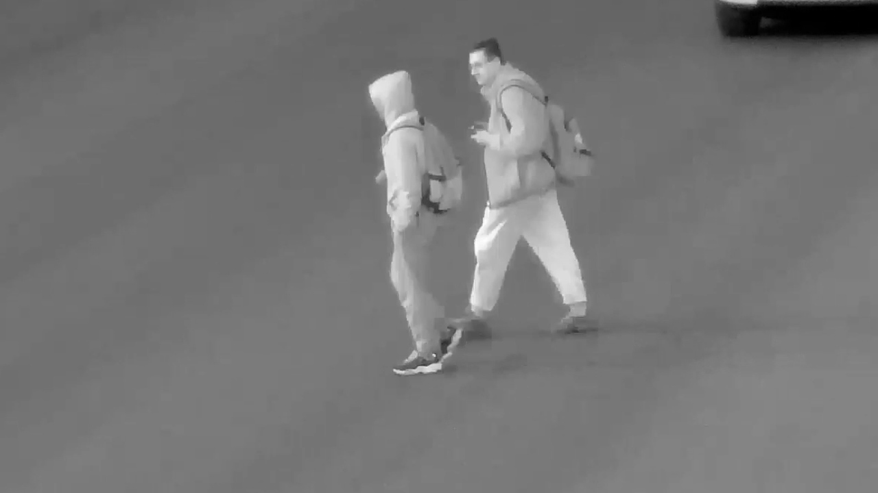 Первому мужчине на вид 20-25 лет, он славянской внешности и крупного телосложения, рост 170-175 см, волосы короткие темного цвета, носит очки для зрения. Был одет в черную куртку, белые джинсы и серую обувь. С собой имел серый рюкзак.