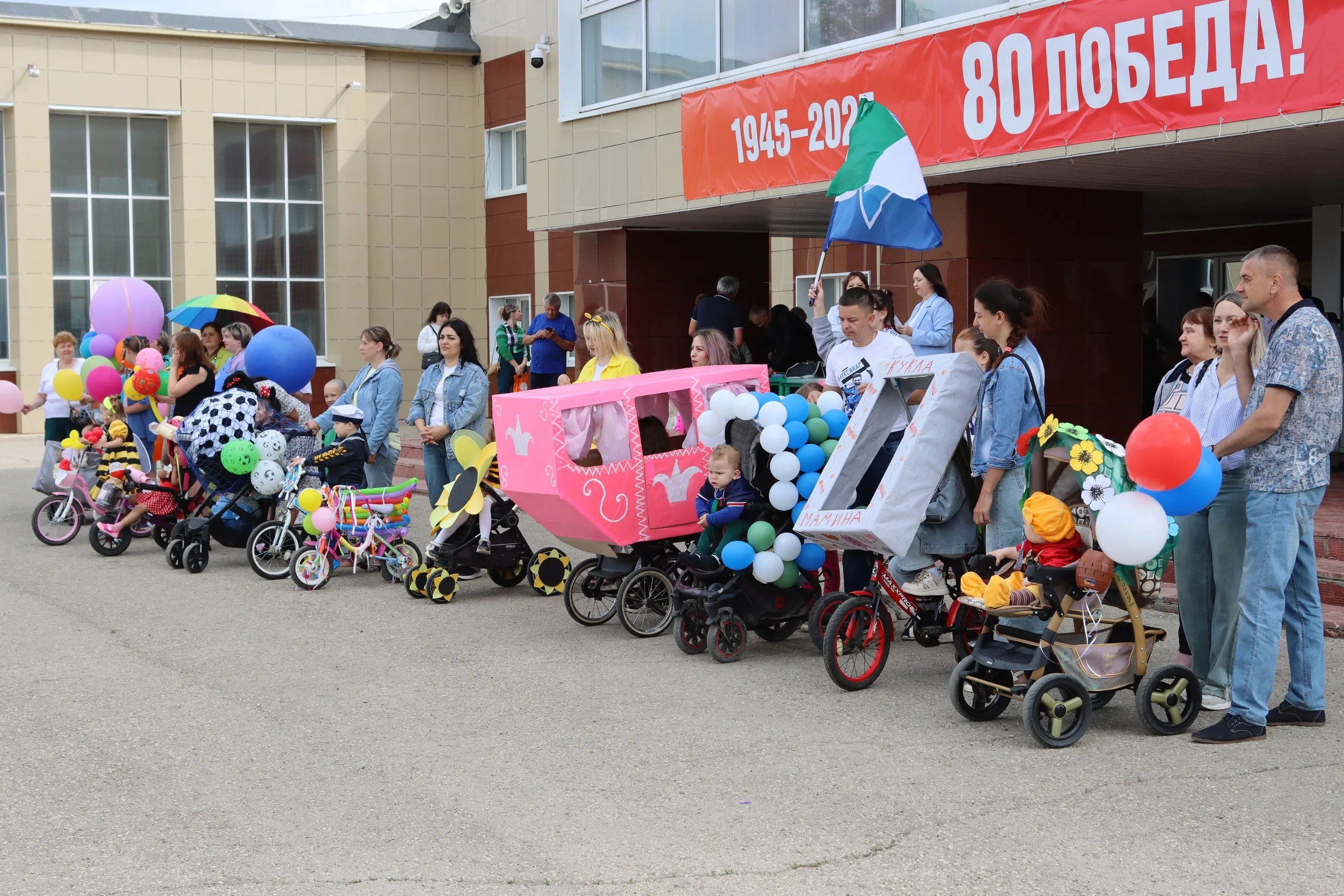 Свои творческие способности проявляли и родители, и дети. Украшали не только коляски, но и велосипеды. В ход шли воздушные шары, ткань, бумага и всевозможные аксессуары. "Водителей" тоже облачали в тематические костюмы. Здесь были и пчелки, и морячки, и даже царственные особы в "карете". Впрочем, необычные образы примерили на себя и родители.