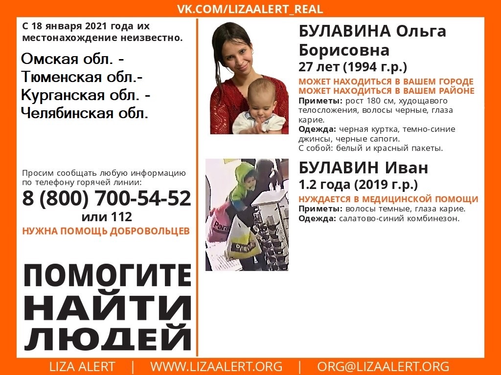 Добровольцы просят всех, кто видел или знает что-либо о местонахождении мамы и сына, звонить по телефонам: 112 или 8 (800) 700-44-52.