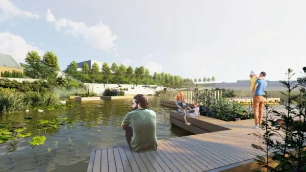 В итоге на противоположном берегу от Сызранского кремля, напротив монастыря, появится большая смотровая площадка, рядом - плавучие острова и зона для медитации. Правее – торговые павильоны и между ними - паркинги. От них протянутся променад вдоль реки и лестничные спуски. На набережной устроят лодочный причал, арт-объект и амфитеатр на склоне.
