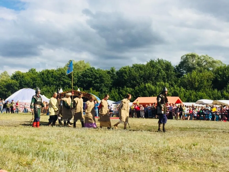 В этот раз роли полководцев Тамерлана и Тохтамыша исполнили профессиональные актеры из Казахстана и Узбекистана. Делегации из этих государств привезли на фестиваль выставки изделий народного творчества.