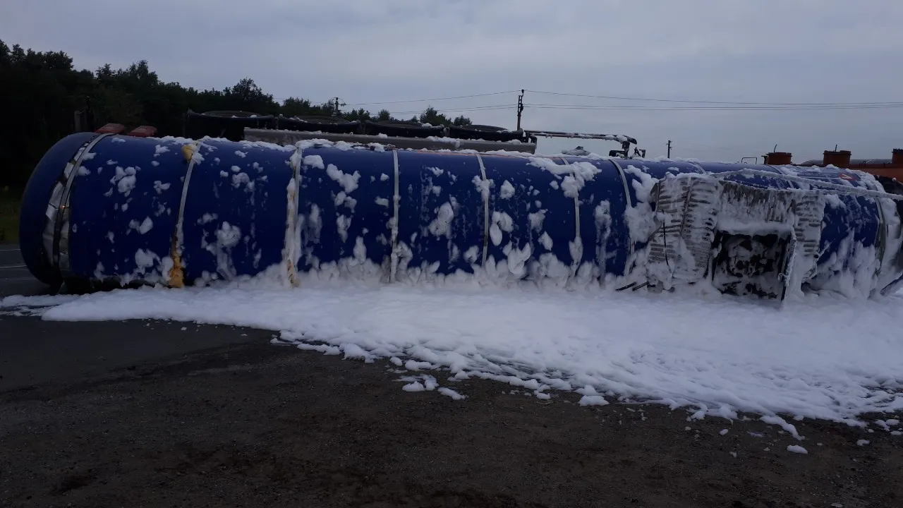 Большегруз перевозил нефть объемом 26 кубометров. По прибытию спасатели установили, что в результате ДТП погибших и пострадавших нет.