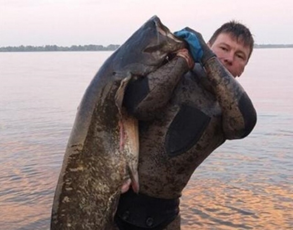 На днях подводный охотник из Тольятти выловил крупного сома весом в полцентнера. Своим трофеем рыбак поделился в интернете.