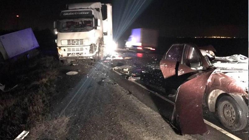 В пятницу, 17 ноября, в Сызранском районе на 865 км трассы М-5 произошло ДТП с участием четырех большегрузов и LADA Granta.