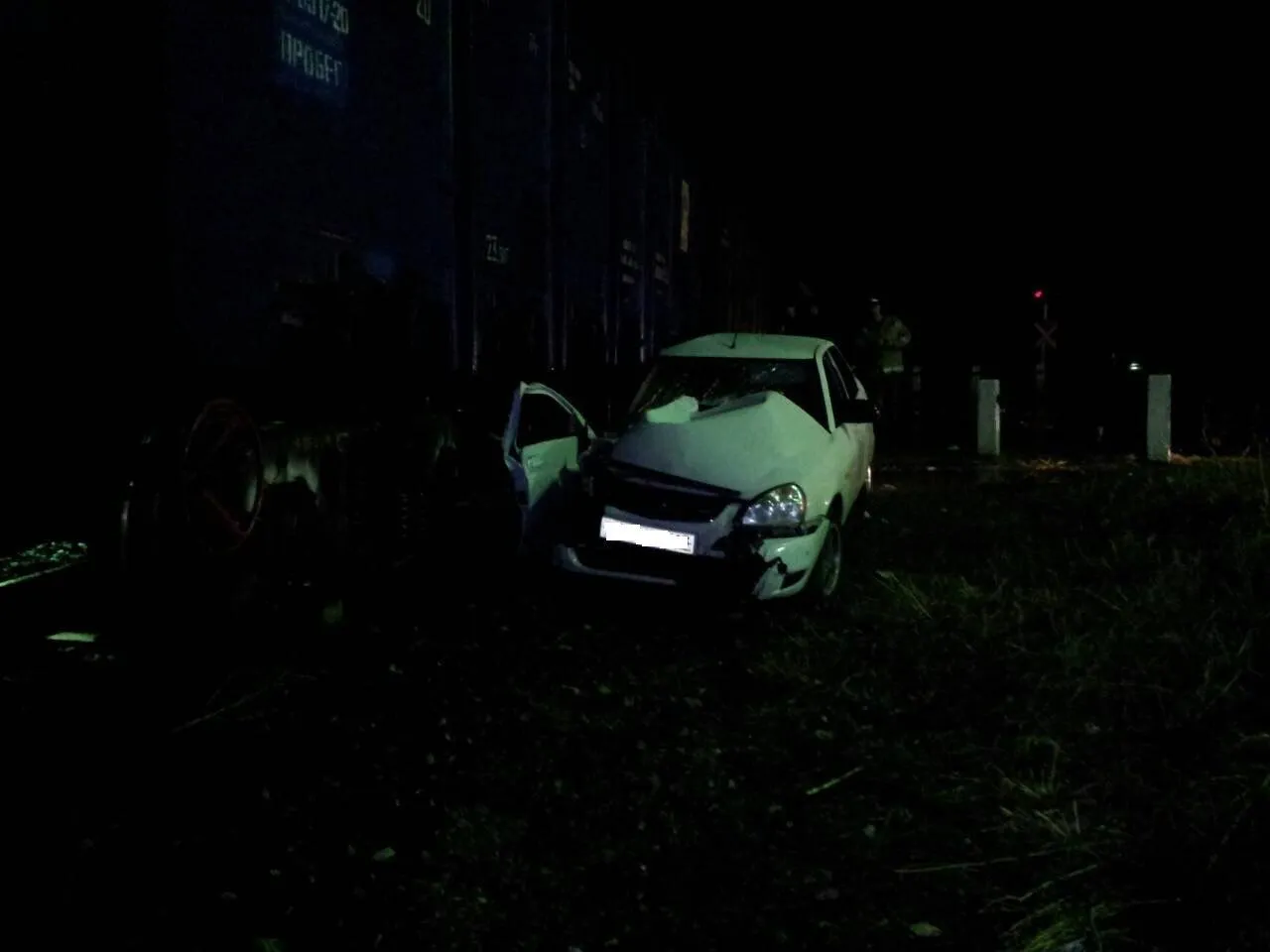 От удара "Приору" отбросило на "Ладу Гранту". Ее водитель тоже спешил проехать переезд и нарушил ПДД.