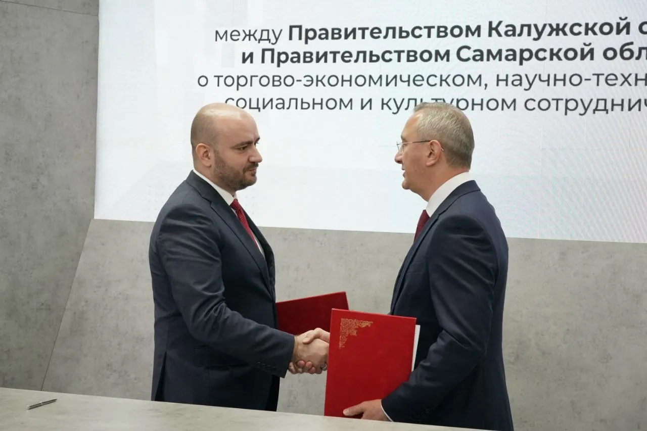 Подписи в соглашении о дальнейшем сотрудничестве между Самарской и Калужской областями 19 июня поставили главы регионов Вячеслав Федорищев и Владислав Шапша.