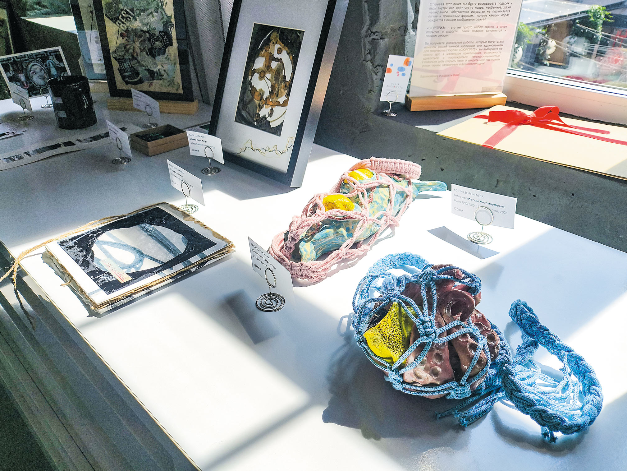 У женщин особый взгляд на вещи и течение жизни. В их руках привычные предметы обретают новые функции и смыслы. У Алсу Коуки Амри, например, авоська с керамической скульптурой превратилась в рыбацкую сеть с морскими гадами. Ее работы напоминают о том, как антропогенные факторы меняют окружающий мир.