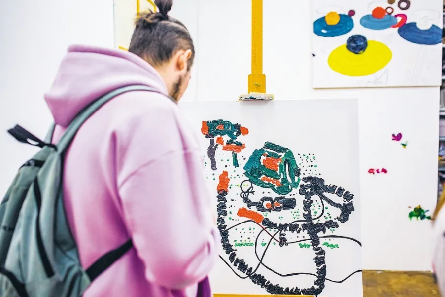 - Эта экспозиция стала для нас хорошим поводом поразмышлять о живописи, - рассказал участник "Мухи" Никита Кузнецов. - После длительного обучения и участия в групповых проектах Виолетта наконец-то представляет свои работы. Они необычно повернуты к окнам, живопись как будто движется и ползет к ним. Поэтому фраза "на вынос" в названии звучит буквально.