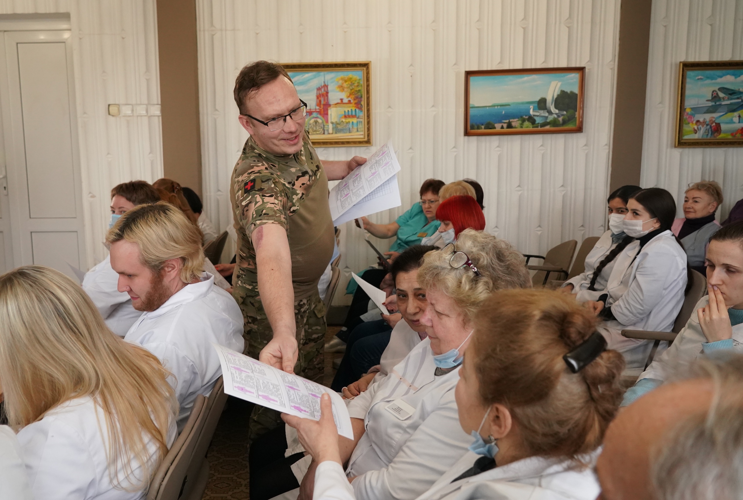 Константин Малышев около трех лет был фельдшером неотложной помощи в cамарской городской больнице № 5. В зону специальной военной операции отправился по собственному желанию. В августе минувшего года получил тяжелое ранение, до сих пор проходит реабилитацию. На днях он провел для коллег из "родного" медучреждения семинар по работе в экстремальных ситуациях.