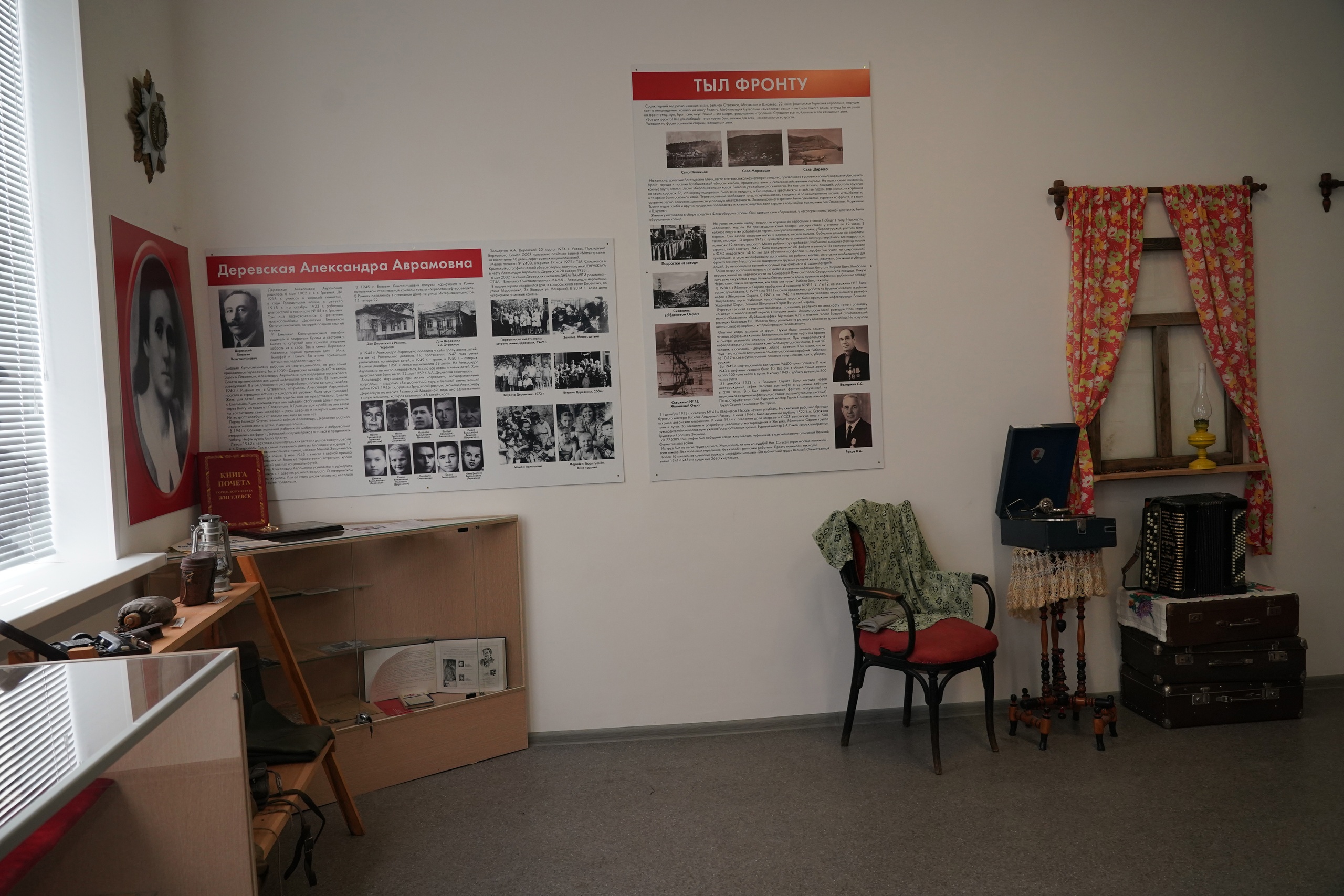 Как отмечают сотрудники Музея боевой славы, собрать материал для экспозиции было не так просто. Семья после войны уехала на Украину, поэтому еще долгое время в Жигулевске о них никто не помнил. Пришлось связаться с родственниками Александры Аврамовны. Семья Сербиных откликнулась и согласилась помочь. Они прислали книги, вырезки из газет и фотографии.