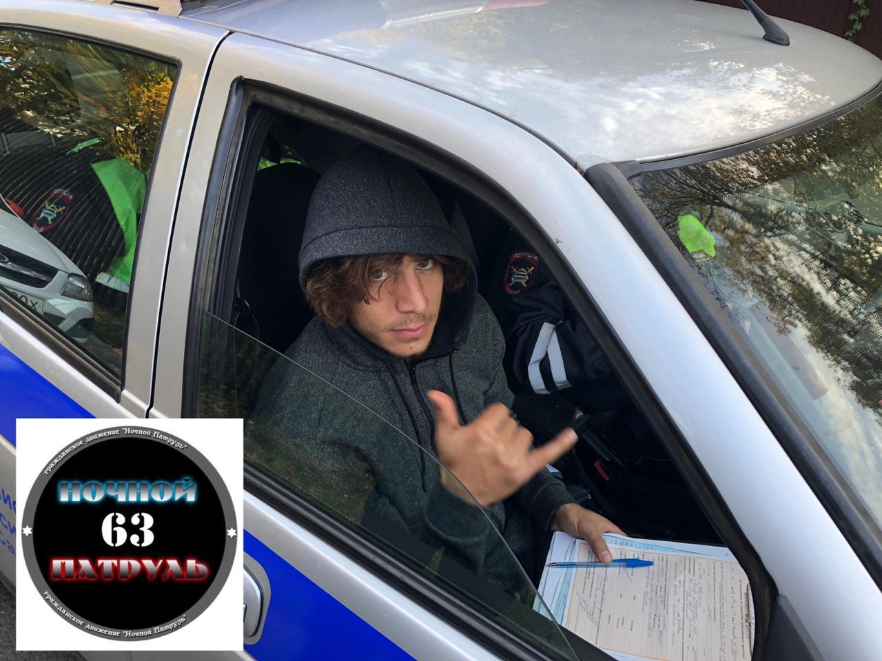 Снимки молодого футболиста в полицейской машине опубликовала группа "Ночного патруля" во "ВКонтакте".