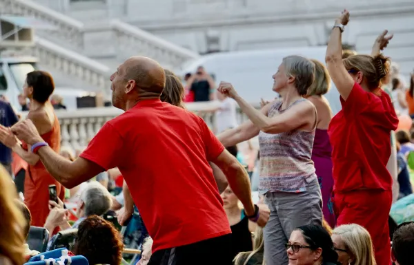 Утром 9 июля у самарцев появится возможность бесплатно позаниматься йогой (6+) на Ленинградском спуске.