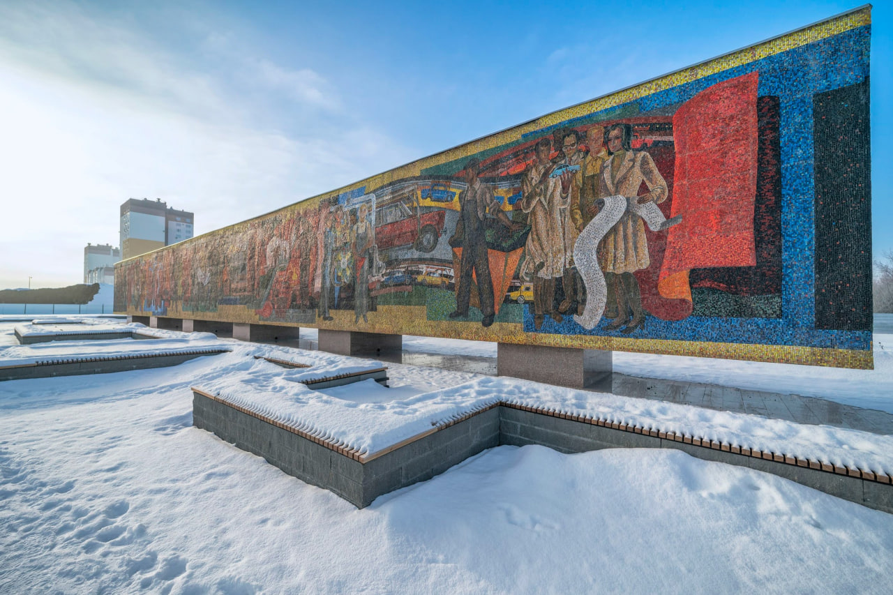 Победителем в этой номинации стала администрация Тольятти и команда по восстановлению 50-метровой мозаичной стелы-панно "Радость труда".