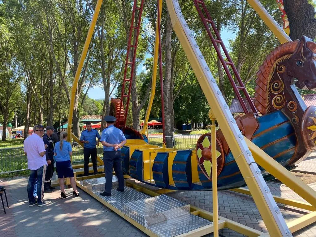 Прокурор вместе со специалистом Госинспекции по надзору за техническим состоянием самоходных машин и других видов техники провели проверку в парке имени Гагарина, они изучили техническую документацию. Была зафиксирована приостановка работы двух аттракционов: "Весёлый батут" и "Корсар".