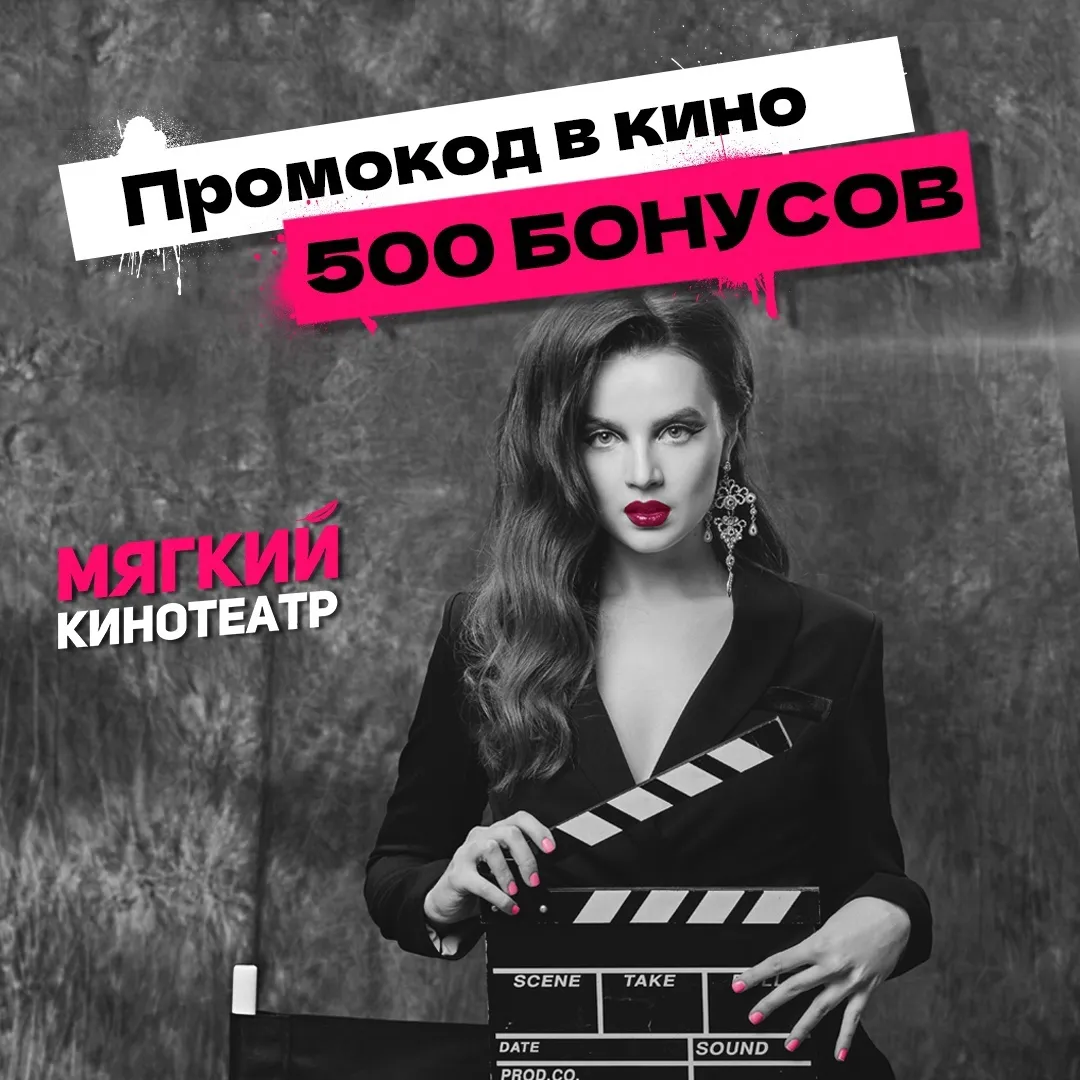 "Мягкий кинотеатр" в ТК "Гудок" и ТРК "Космопорт" дарит промокод, по которому начисляется 500 бонусов (1 бонус равен 1 рублю).